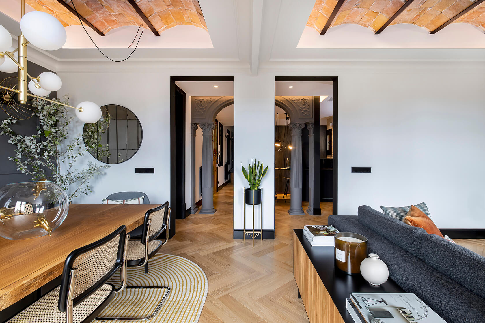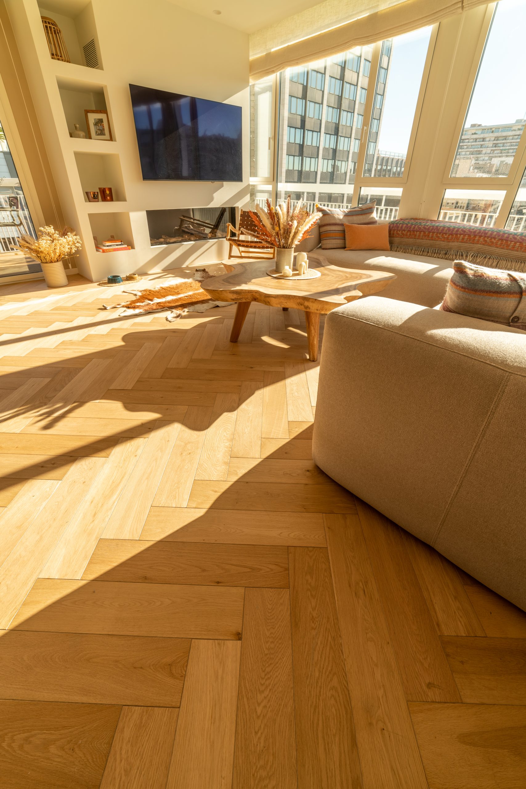 Patterned movement. Cierzo features natural oak in a herringbone layout, brushed and matte lacquered to bring texture and rhythm.