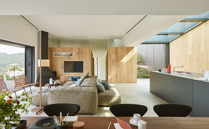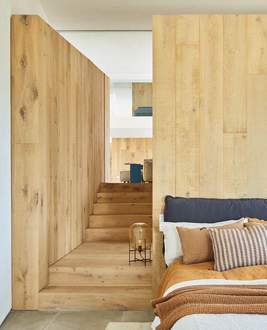 In this private residence in Begur, the Parquet model from the Bespoke collection extends throughout the entire home, seamlessly integrating into every room—from the kitchen to the bathroom. The wood, with its rich texture and warm tones, brings a sense of harmony, naturally adapting to every corner. From the most social areas to the most intimate spaces, the design flows effortlessly.