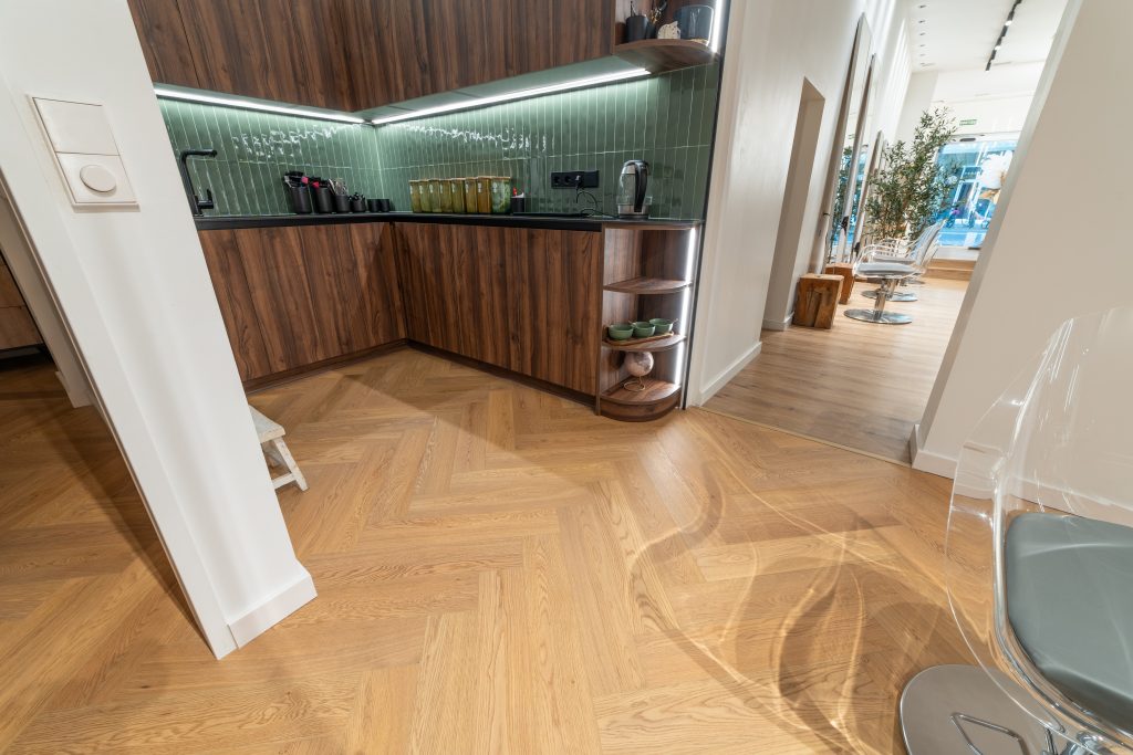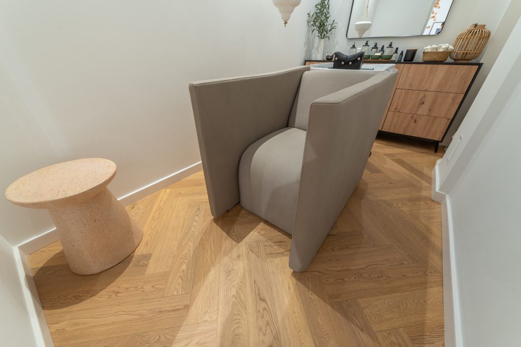 Attractive and sophisticated. The Cierzo digital wood print is a material of unique beauty, featuring a smooth, natural texture that reflects the quality of its craftsmanship. With a special brushing process and a matte varnish, each piece highlights its warm, rich tone. Its detailed grain and sturdiness make it perfect for both modern and rustic spaces.